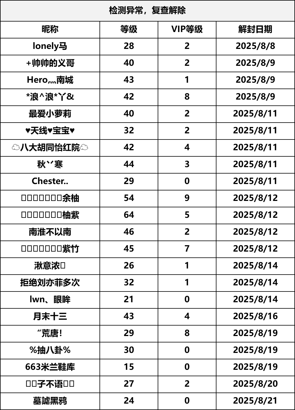 以下为8月08日-8月21日,经官方复查发现检测存在误判后解封/改正处罚的账号。相关检测已经进行优化调整,避免后续相同情况再次出现。